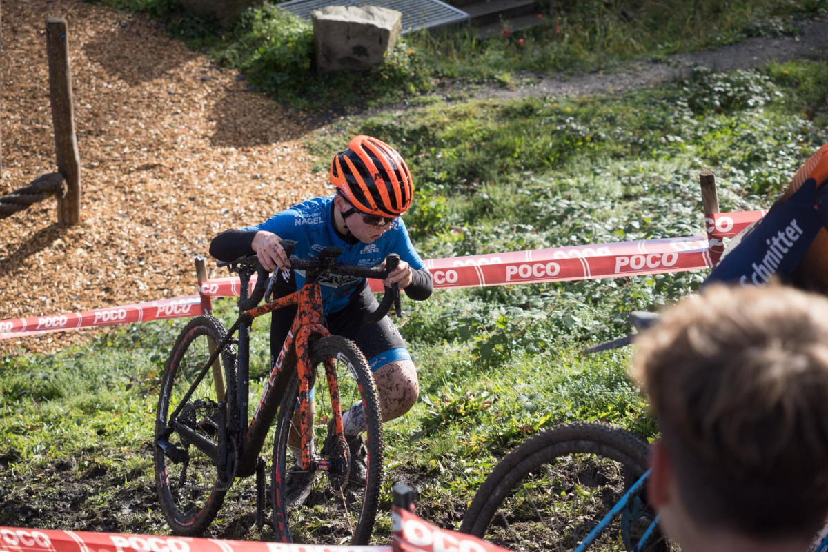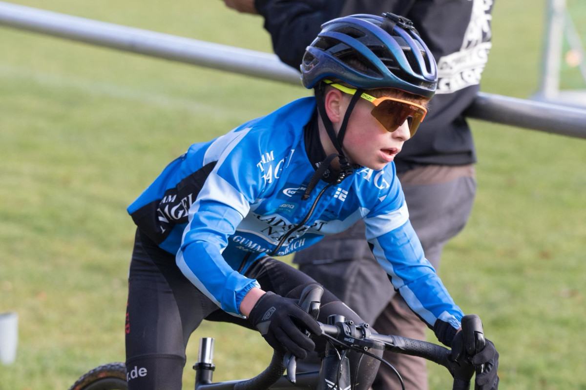 Bereits am Freitag nutzte Moritz die Gelegenheit, die Strecke zu testen, sein Fazit: anspruchsvoll, aber gut fahrbar. In der Klasse U15 durfte er durch seinen vierten Platz in der Rangliste am Samstag beim 1. Lauf aus der ersten Reihe starten. Mit einem perfekten Start setzte er sich sofort im Feld fest und lieferte ein schnelles, kämpferisches Rennen. Gegen die starke Konkurrenz konnte er sich am Ende des ersten Tages einen hervorragenden 7. Platz sichern. Anschließend unterstützte er noch die älteren Teamkolleginnen und -kollegen aus dem Nagel CX Team lautstark und machte Fotos. Am Sonntag beim 2. Lauf wollte Moritz im ähnlich stark besetzten Feld noch eine Schippe drauflegen und das gelang ihm eindrucksvoll. Trotz zahlreicher Attacken der Konkurrenz blieb er konzentriert, nutzte im entscheidenden Moment eine Lücke und überholte sowohl einen dänischen als auch einen deutschen Fahrer. Mit großem Einsatz brachte er das Rennen auf einem sensationellen 5. Platz ins Ziel.Damit liegt Moritz nun in der Gesamtwertung der Cyclocross-Bundesliga auf Platz 5, direkt hinter einem Fahrer aus den Niederlanden und durfte sich obendrein noch über ein kleines Preisgeld für die Spardose freuen.