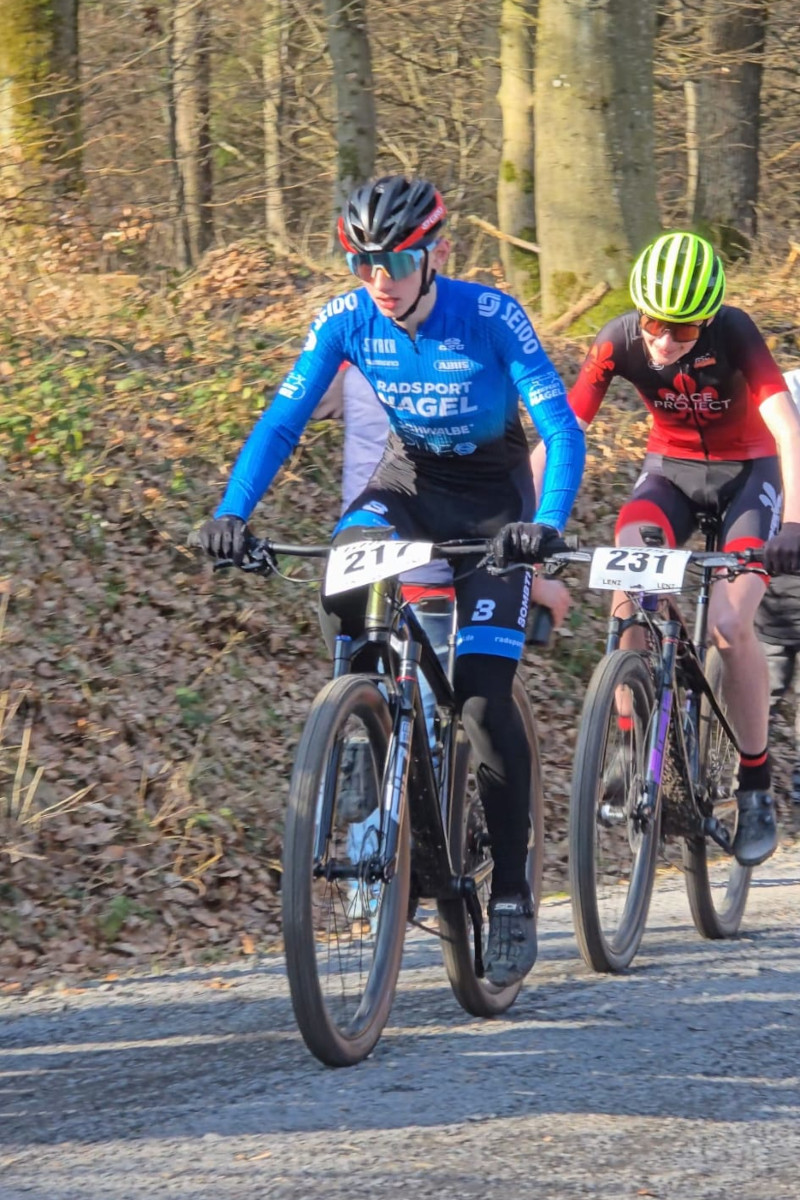 Am frühen Morgen musste zunächst Ben bei eisigen Temperaturen auf die Strecke. Aufgrund der Startaufstellung nach Anmeldereihenfolge fand er sich im hinteren Bereich des rund 30 Fahrer starken Feldes wieder. Nach einer rund sechsmonatigen Rennpause galt es zunächst, wieder den gewohnten Rhythmus zu finden. Doch von Runde zu Runde kam Ben besser ins Rennen, arbeitete sich kontinuierlich nach vorne und machte zahlreiche Plätze gut. Am Ende fuhr er auf einem starken 7. Platz ins Ziel – verbunden mit dem guten Gefühl, wieder voll im Rennmodus zu sein und mit großer Motivation in die Saison zu starten.Am Mittag ging dann Lukas ins Rennen. Bei mittlerweile frühlingshaften Temperaturen startete er aus dem mittleren Feld hinter der Elite. Besonders in den Anstiegen zeigte Lukas seine Stärke und überholte eine Vielzahl an Fahrern. Mit großem Kampfgeist arbeitete er sich durch das große Starterfeld nach vorne und wurde am Ende mit einem hervorragenden 3. Platz belohnt.
