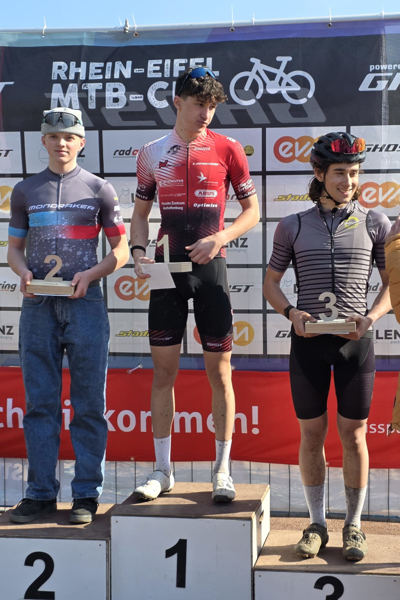 Am frühen Morgen musste zunächst Ben bei eisigen Temperaturen auf die Strecke. Aufgrund der Startaufstellung nach Anmeldereihenfolge fand er sich im hinteren Bereich des rund 30 Fahrer starken Feldes wieder. Nach einer rund sechsmonatigen Rennpause galt es zunächst, wieder den gewohnten Rhythmus zu finden. Doch von Runde zu Runde kam Ben besser ins Rennen, arbeitete sich kontinuierlich nach vorne und machte zahlreiche Plätze gut. Am Ende fuhr er auf einem starken 7. Platz ins Ziel – verbunden mit dem guten Gefühl, wieder voll im Rennmodus zu sein und mit großer Motivation in die Saison zu starten.Am Mittag ging dann Lukas ins Rennen. Bei mittlerweile frühlingshaften Temperaturen startete er aus dem mittleren Feld hinter der Elite. Besonders in den Anstiegen zeigte Lukas seine Stärke und überholte eine Vielzahl an Fahrern. Mit großem Kampfgeist arbeitete er sich durch das große Starterfeld nach vorne und wurde am Ende mit einem hervorragenden 3. Platz belohnt.